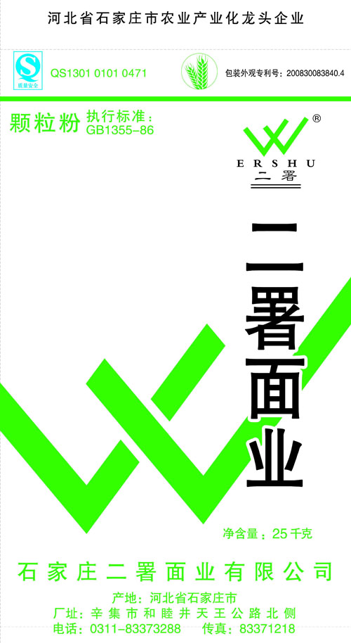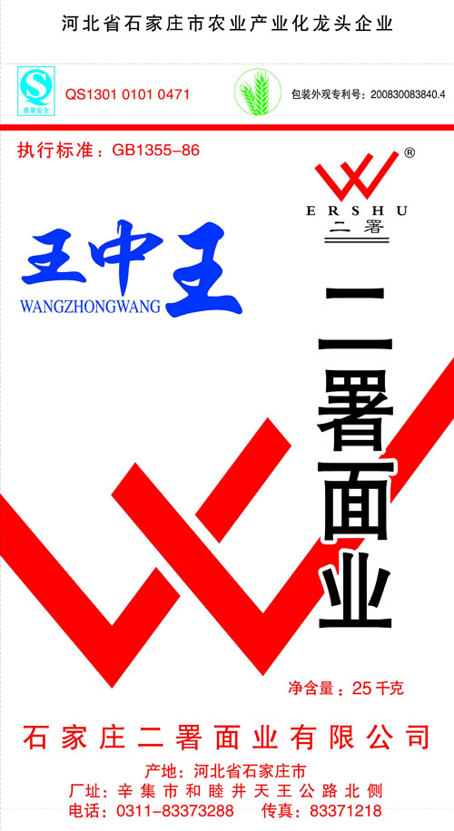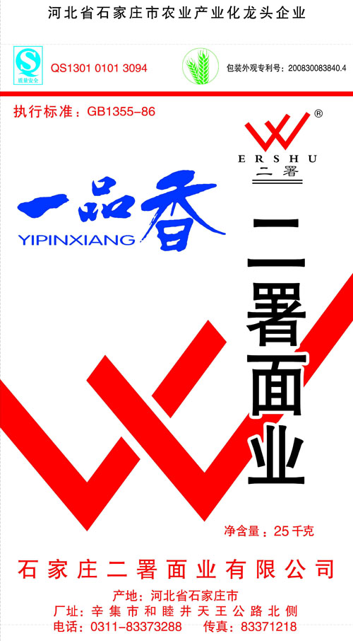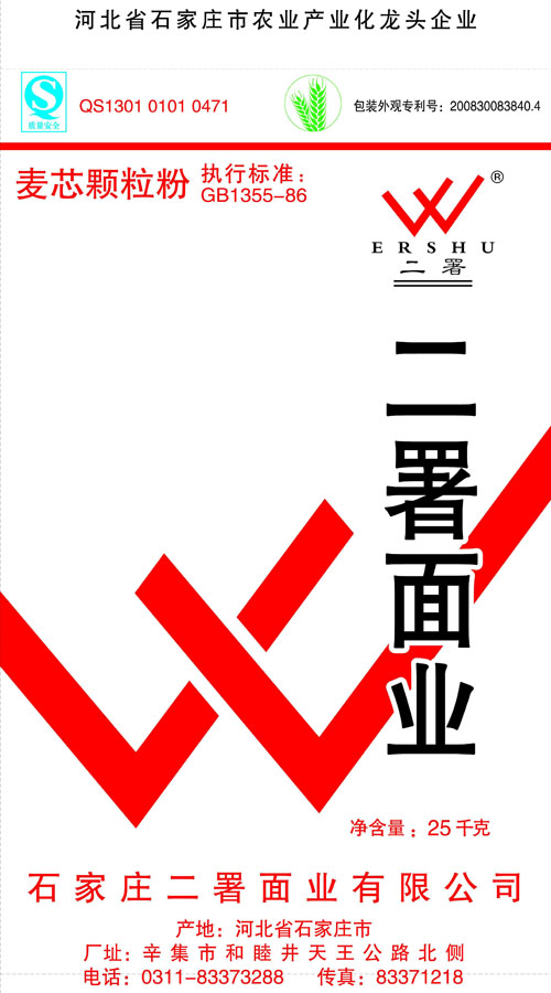 河北面業(yè)         二署面業(yè)有限公司創(chuàng)建于1989年,現(xiàn)已具備日處理小麥300噸的能量,產(chǎn)品質(zhì)量穩(wěn)定,深受客戶青睞。 二署面業(yè)地理位置優(yōu)越,北靠307國道石黃高速,南鄰石德鐵路,衡井國道,交通十分方便,為貨物運(yùn)輸提供保證及時(shí)運(yùn)輸?shù)奶烊粭l件。產(chǎn)品運(yùn)銷:黑龍江、吉林、遼寧、河北、內(nèi)蒙、陜西、山西等大中省份,贏得了廣大消費(fèi)者的認(rèn)可。 河北面業(yè)